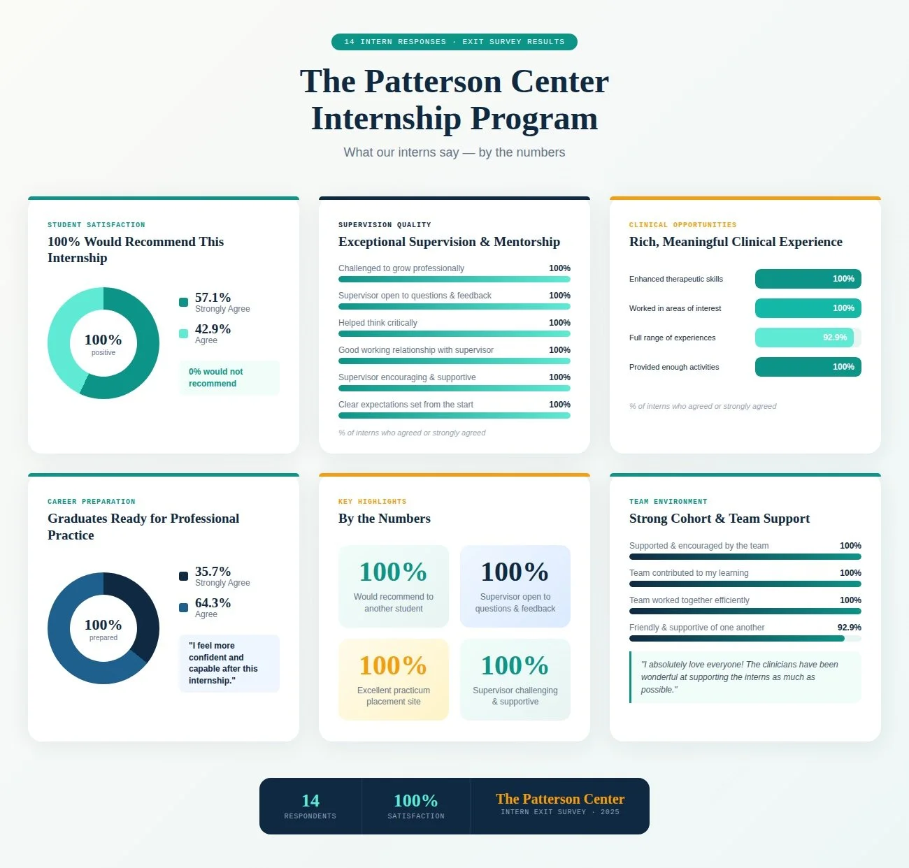 “I felt so prepared. Everything was team oriented. The training was in depth, the supervision was high quality, and it was a great team to be a part of!” - 2025 Graduate